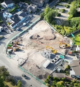 The site investigation indicated made ground up to 2.4m in depth, containing frequent concrete obstructions, these were removed before our arrival on site. Beneath this were loose becoming dense sands; solid geology was not encountered during the site investigation.
